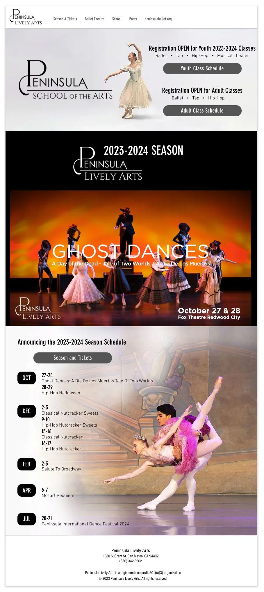 My role is to create graphics that communicate this is a professional dance company, school, and to promote productions for San Francisco Bay Area’s second oldest ballet company (57 years).